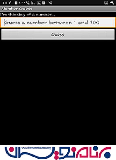 حال در کلاس یک متغیر رندم تعریف می کنید و یک متغیر که از خود کاربر از داخل edittextگرفته می شود اگر متغیر رندم با متغیری که کاربر وارد کرده است برابر باشد پیغام می دهد عدد درست است، اگر کوچک تر باشد پیغام می دهد عدد بدست آمده خیلی کم است و اگر بزرگتر از حدس زده شده باشد پیغام می دهد که عدد به دست آمده خیلی بزرگ است.