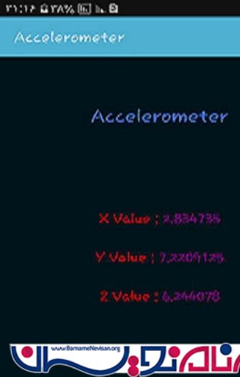 در کلاس بالا از 3 متغییر استفاده شده است که با استفاده از سنسور حرکتی که خود موبایل دارد این متغییر ها آن ها را دریافت می کنند و شما با تعریف کردن Textview ها آن متغییر ها را برای آن Textview تنظیم می کنید شما می توانید از کد های Html هم برای تغییر دادن رنگ فونت استفاده نمایید.