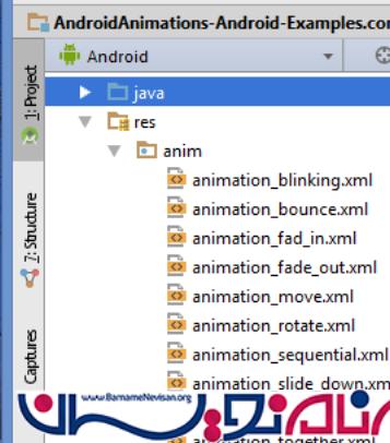 ابتدا در پوشه ی res یک پوشه ی جدید به نام anim می سازیم و xml های مربوطه را اضافه می نماییم: