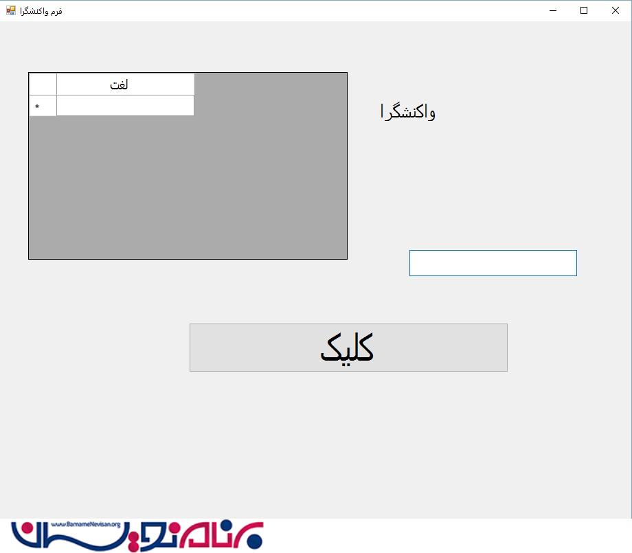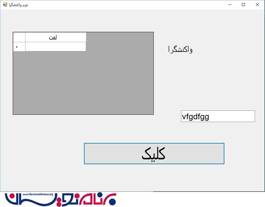 برای این منظور یک فرم بسیار ساده می سازیم که شامل یک دیتا گریدویو یک برچسب یا همان (label) و یک تکست باکس و یک کلید که در زمان اجراء و در رزولیشن های مختلف در اندازه ی ثابت خود با رزولیشن 1920x1080 باقی بماند.