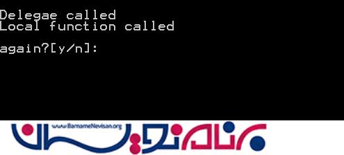 شی printMessageDelegate باید قبل از فراخوانی تعریف شده باشد.( همانطور که می بینید این شی با یک عبارت lambda تعریف شده). اما در زیر آن می توانید ببینید که یک تابع محلی قبل از آنکه پیاده سازی شده باشد فراخوانی شده البته تفاوت مهم میان عبارت های lambda و توابع محلی که ممکن است شما را به خود جلب کند کارایی و ضریب پاسخگویی بالاست. زمانیکه شما نیاز به یک کد با ضریب پاسخگویی بالا داشته باشید ویژگی پرفورمنس توابع محلی حائز اهمیت خواهد بود.