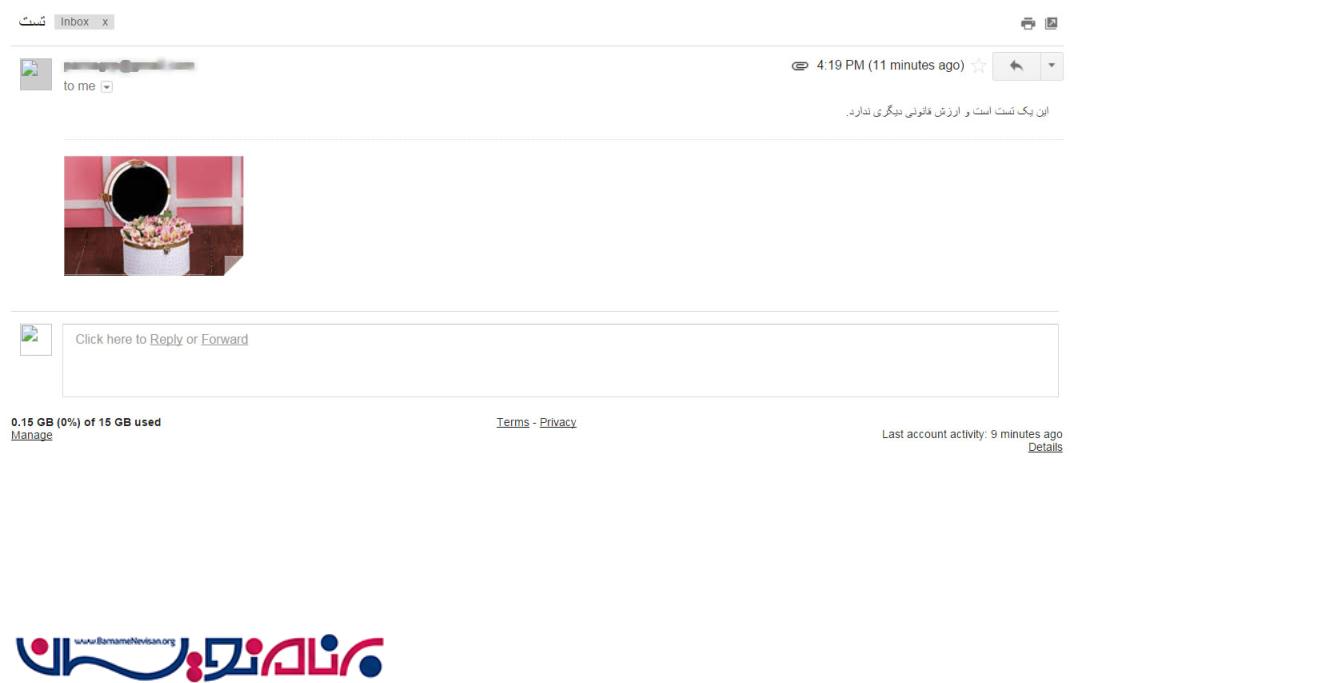 ایمیل ارسال شده نیز مانند تصویر زیر در ایمیل مقصد قابل مشاهده است .