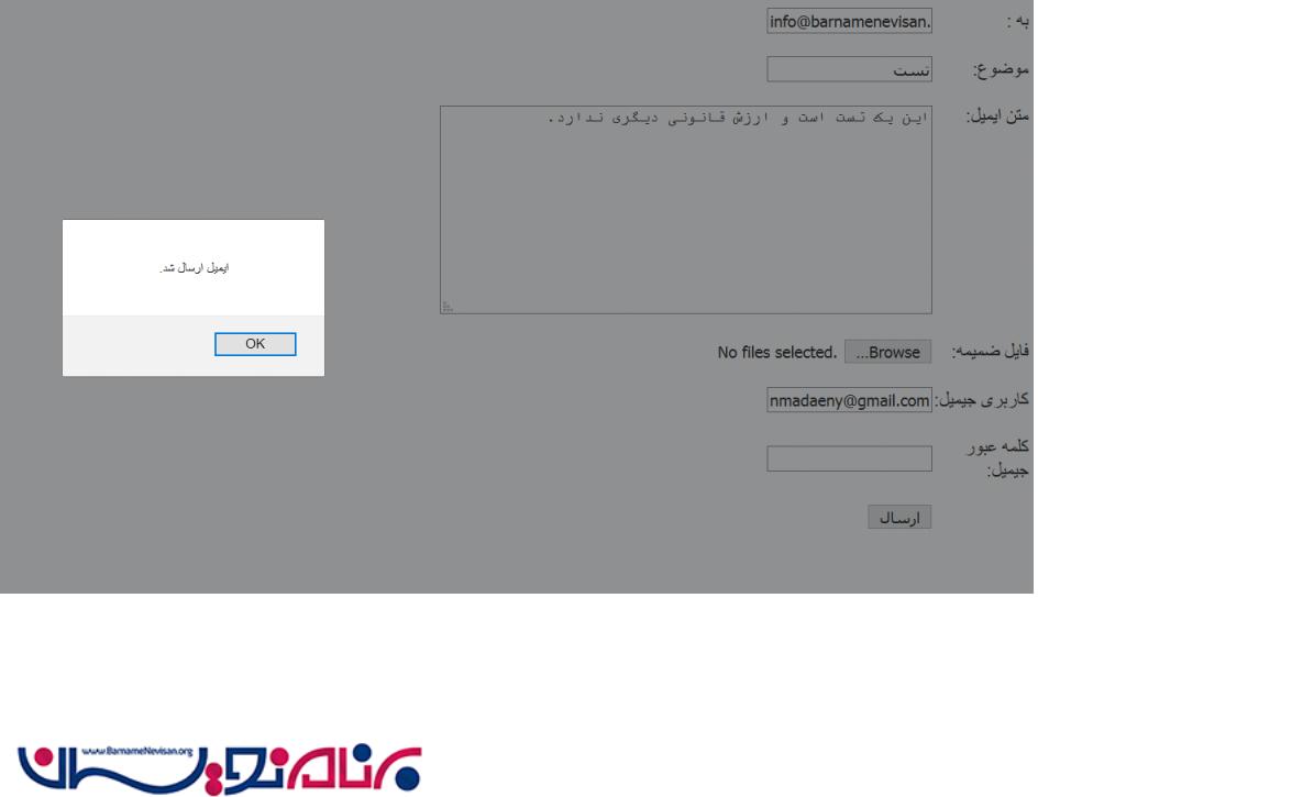 درآخر ایمیل از طریق تابع Send موجود در کلاس SmtpClient ارسال خواهد شد.