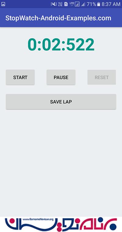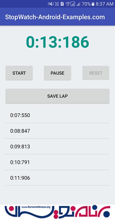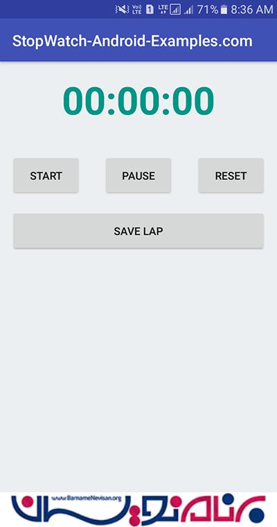 پنجشنبه 21 اردیبهشت 1396در این مقاله قصد داریم که یک کرنومتر در اندروید ایجاد نماییم این کرنومتر یک دکمه شروع یک دکمه توقف و یک دکمه برای دوباره کار کردن و صفر شدن زمان دارد و یک دکمه هم برای ثبت زمان ها استفاده می شود.
