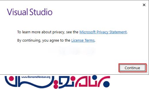 اگر شما می خواهید user control prompt را دریافت کنید بر روی yes کلیک کنید.پنجره ویژوال استودیو باز خواهد شد و بر روی دکمه Continue کلیک کنید.