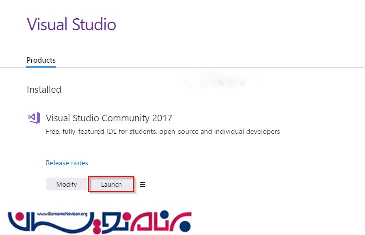 بعد از نصب Visual Studio 2017 Community با موفقیت انجام شد ، سپس بروی دکمه Launch کلیک کنید.