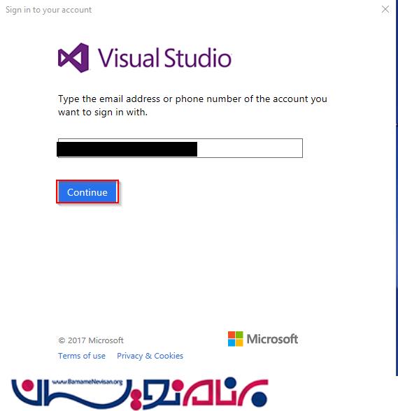 پنجره حساب کاربری مایکروسافت باز خواهد شد و شما می توانید اعتبار حساب کاربری مایکروسافت خود را وارد کنید و مانند تصویر وارد آن شوید.