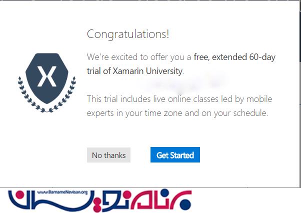 ما یک فرصت عالی برای دانلود ویژوال استودیو 2017 از 14 مارس داریم.بعد ورود به سایت بالا به تصویر زیر مواجه می شوید.ما بسیار خوشحالیم که دسترسی 60 روزه رایگان به دانشگاه زامارین داریم.