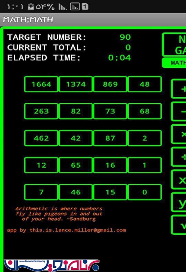 سه شنبه 9 خرداد 1396در این مقاله قصد داریم سورس یک بازی برای شما قرار دهیم این سورس به این صورت هست که زمانی که شما شروع به بازی کردن می کنید یک عدد به صورت رندم برای شما قرار می دهد و شما با اعداد داده شده و عملیات ریاضی باید آن عدد را در زمان تعیین شده به دست آورید.