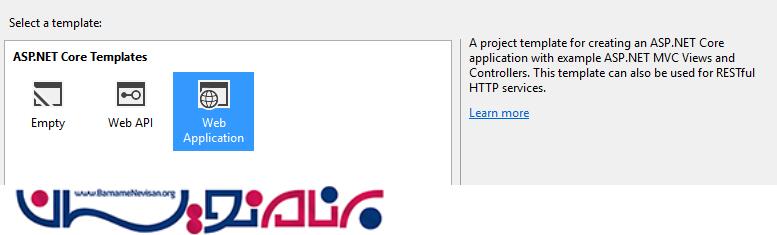 گزینه Web Application را انتخاب کرده و OK را بزنید.