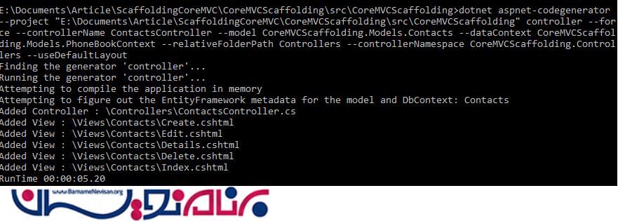 به کمک دستور زیر که شامل آدرس پروژه و اطلاعات model است می توان کنترلر و View را ساخت.