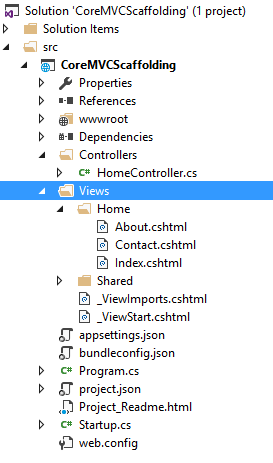 پس از مدتی صبر کردن، در داخل solution explorer می توانیم ببینم که view ها ساخته شده اند.