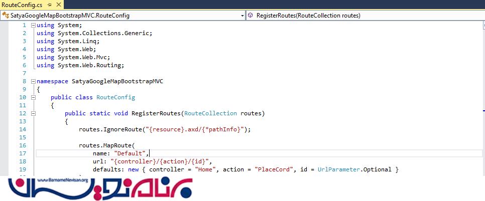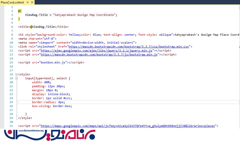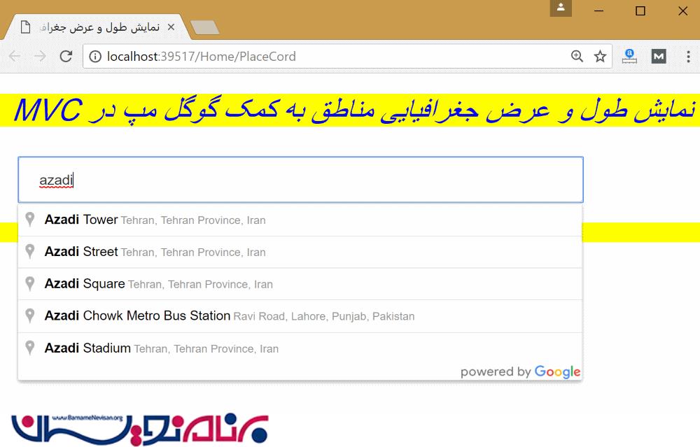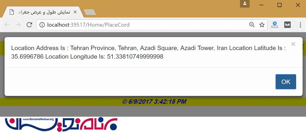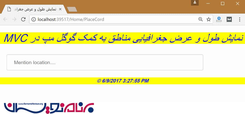 نمایش مختصات یک مکان با Google Map در MVC
