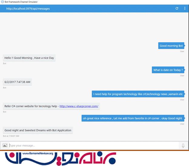 سه شنبه 23 خرداد 1396Bot Framework این توانایی را به شما می دهد که ربات هایی بسازید تا رفتار های مختلف کاربران را کنترل کند. شما می توانید مکالمه هایی را بصورت رایگان برای ربات هایتان طراحی کنید. ربات شما می تواند تعاملات بیشتری جهت هدایت کاربر انجام دهد. در این مقاله درباره این موضوع صحبت می کنیم که چگونه ربات در ویژوال استادیو توسط Bot Template 2017 بسازید و آن را در Bot Emulator تست کنید.