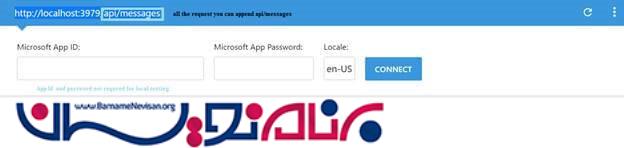 شما نیازی نیست تا Microsoft App ID و Microsoft Password برای تست گرفتن بصورت local داشته باشید، بنابراین connect را بزنید