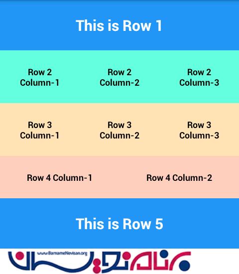 ایجاد جدول با سطر و ستون در اندروید