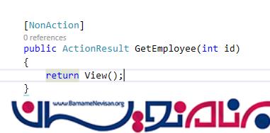 برای مثال متد public با نام GetEmployee نمی تواند مانند دیگر اکشن متد ها فراخوانی شود. کد نمونه در زیر قرار داده شده است.