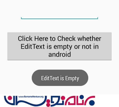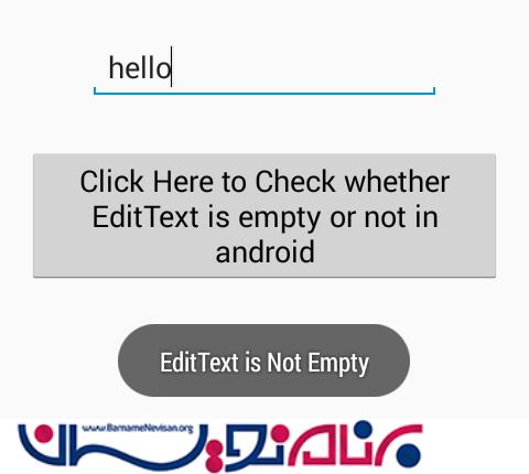 شنبه 7 مرداد 1396در این مقاله قصد داریم که یک نمونه برای شما قرار دهیم به این صورت که شما می توانید با پر یا خالی بودن edittext خودتان را با استفاده از یک دکمه متوجه شوید که آیا خالی هست یا پر شده است.