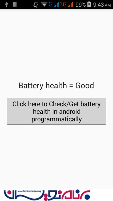 چهارشنبه 7 تیر 1396در این مقاله قصد داریم که وضعیت گوشی باطری اندروید خود را چک نماییم این سورس وضعیت باطری را چک می کند و وضعیت آن را اعلام می نماید و برای اپلیکیشن هایی که در زمینه ی سخت افزار و شی تهیه می شود مفید است.