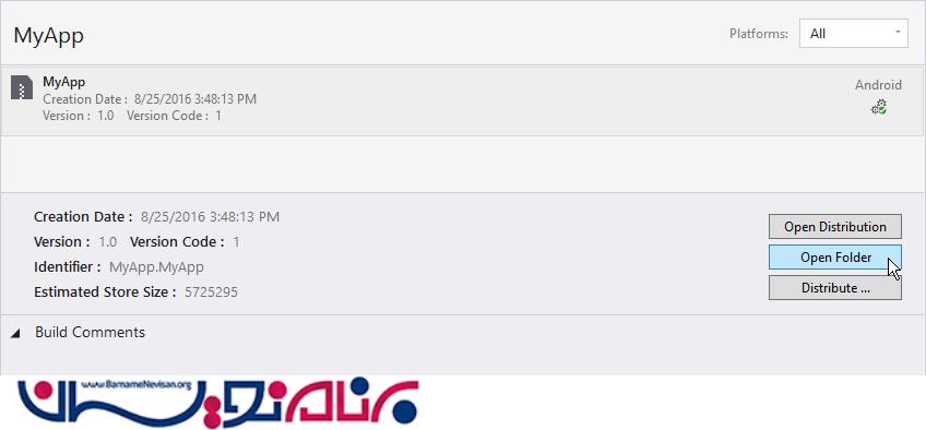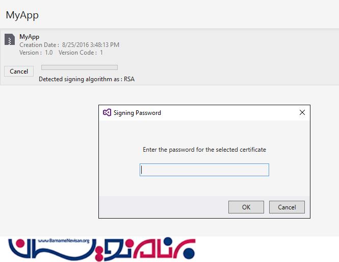 بعد از امضای برنامه که انتشار شده است حالا شما می توانید این برنامه را برای انتشار استفاده نمایید.