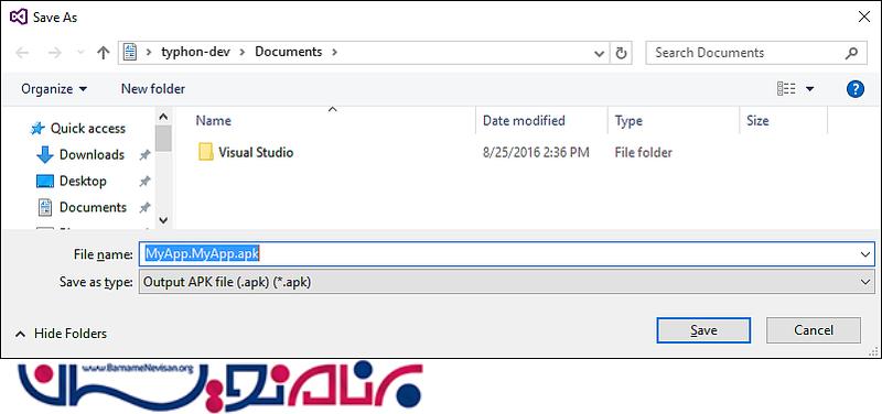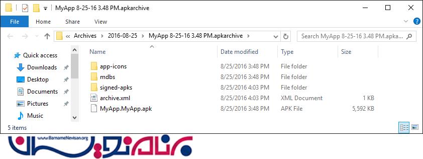 هنگامی که یک برنامه ذخیره می شود apk تولید شده در یک آدرس ذخیره می شود