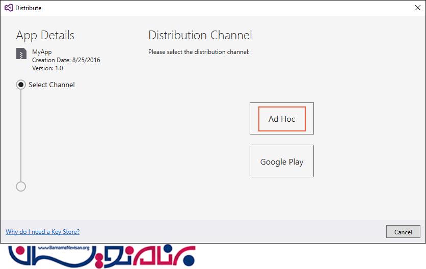 برای انتشار برنامه با توجه به توضیحات بالا از ad-hoc استفاده می کنید:
