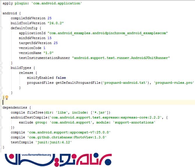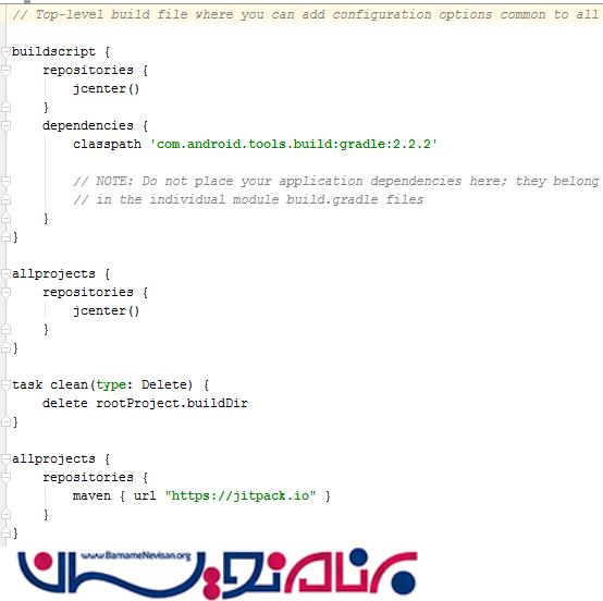زمانی که build.gradle را باز کنید به شکل زیر است.
