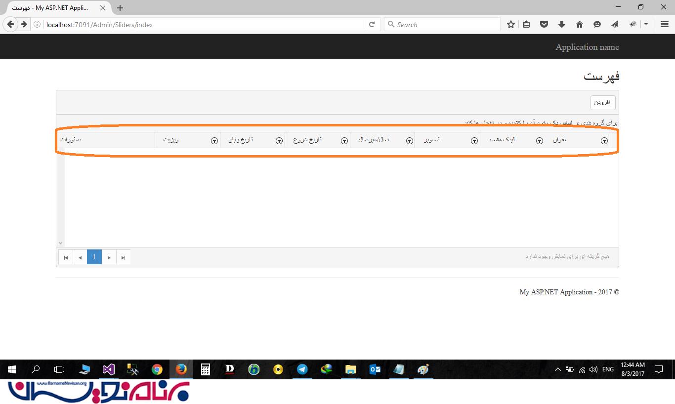 مشکل خالی بودن ستونهای Index View هنگام استفاده از Kendo Scafolding