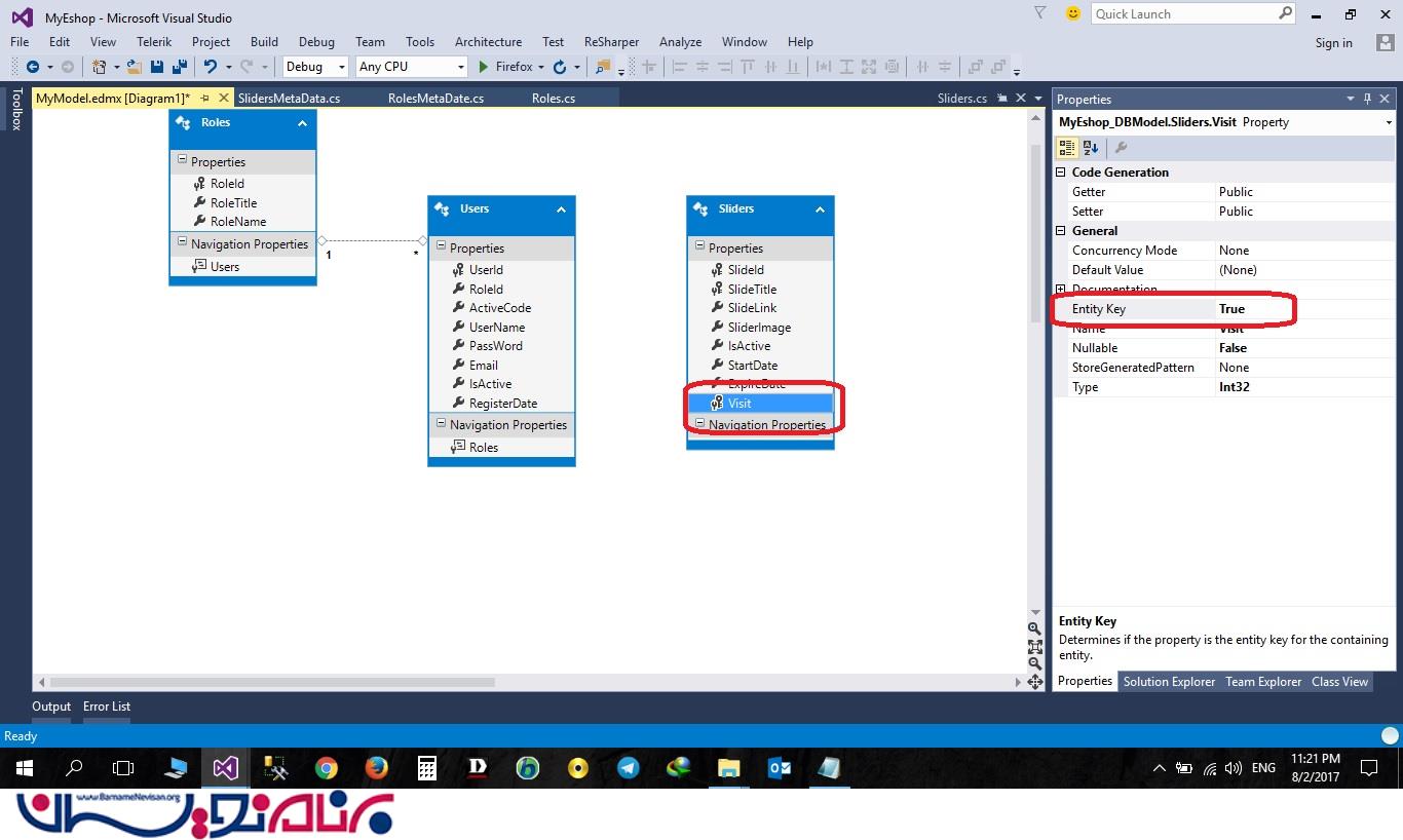 همانطور که در شکل ملاحظه می فرمایید، Entity فیلدها TRUE بود و با False کردن آنها مشکل حل شد و کد به شکل زیر دراومد.