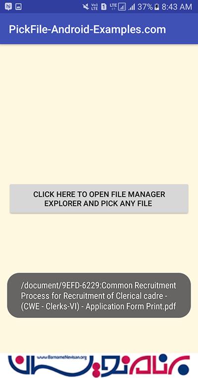 سه شنبه 17 مرداد 1396در این مقاله می خواهیم با استفاده از این سورس تمام انواع مختلف فایل های ذخیره شده را باز نماییم با استفاده از file manager های مختلف در بعضی مواقع شما می خواهید یک نوع از فایل را باز نمایید و با استفاده از Toast پیغام برای شما نمایش داده می شود.