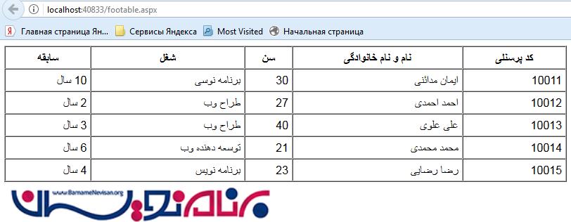 و اکنون میتوانیم جدول خود را بصورت زیر مشاهده نماییم