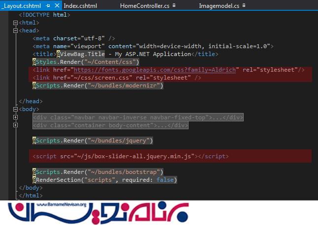در _Layout.cshtml فایل های Adaptor 3D slider را اضافه کنید.