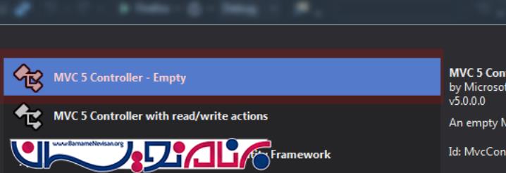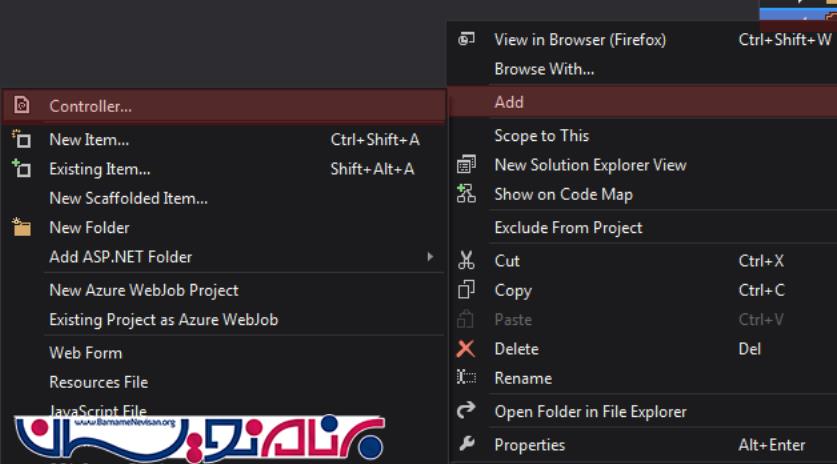 اکنون مطابق تصویر باید یک Controller جدید در فولدر Controller ایجاد نمایید.