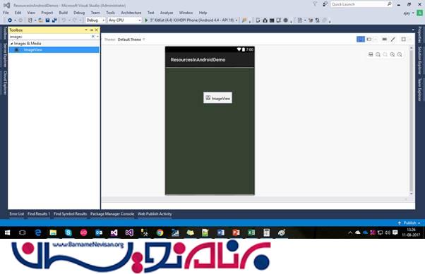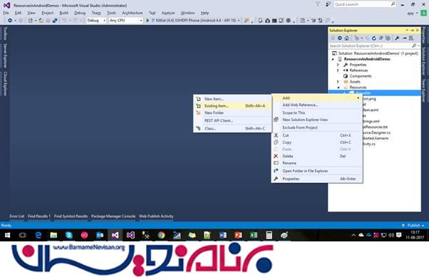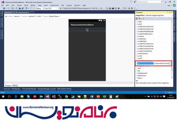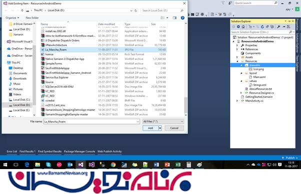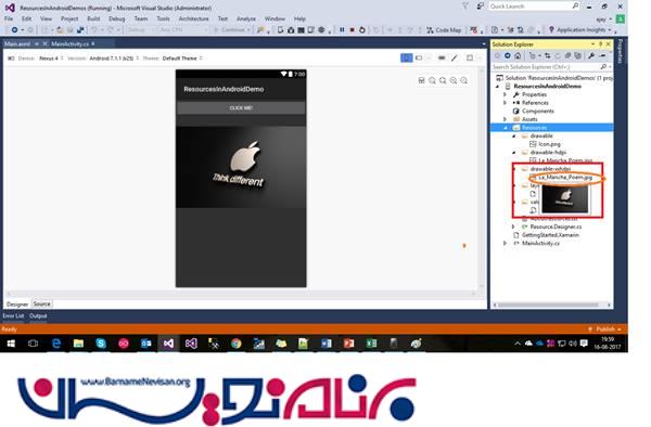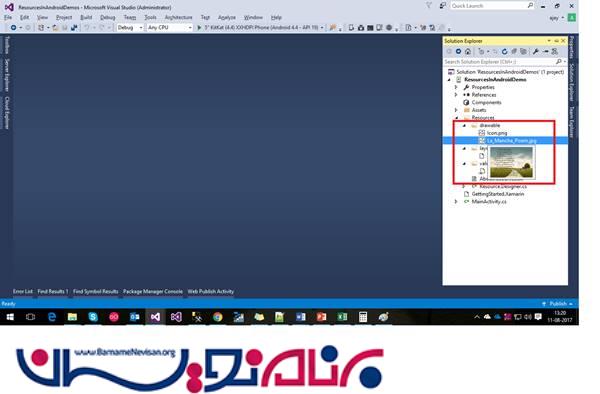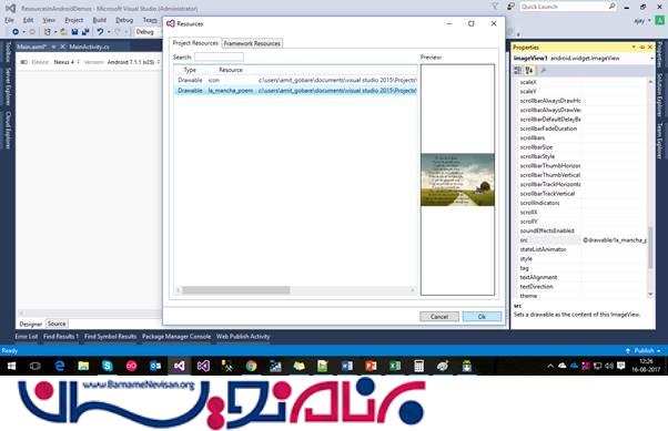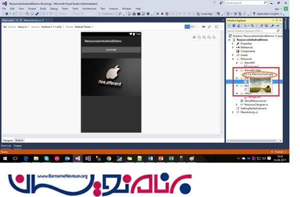 اکنون عکس به بخش drawable در پوشه Resources در پروژه شما اضافه شده است.