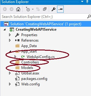 پس از ایجاد پروژه ASP.NET Web API ، ساختار پوشه سابق و پرونده ها به طور پیش فرض به پروژه اضافه می شوند که مشابه پروژه MVC است، بنابراین اجازه دهید ما در مورد آنها به صورت مختصر موارد زیر را بررسی کنیم: