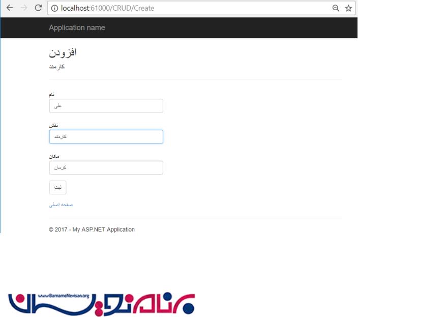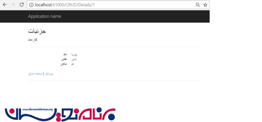 به صورت پیش فرض Home و Index هستند ، ولی در اینجا ما کنترلری با نام CRUD ایجاد کرده ایم ، به همین دلیل باید نام CRUD را ذکر کنیم.