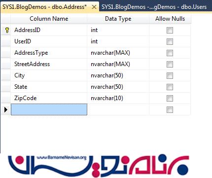 کلاسی با نام Address اضافه کرده و کد زیر را به آن اضافه نمایید.