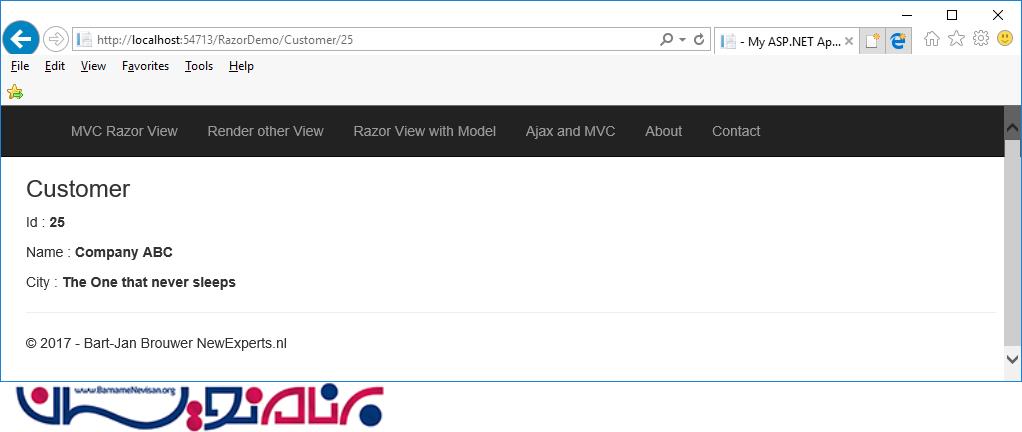صفحه Customer.cshtml به شکل زیر نمایش داده می شود.