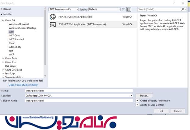 یک پروژه جدید ASP.NET MVCرا ایجاد کنید.