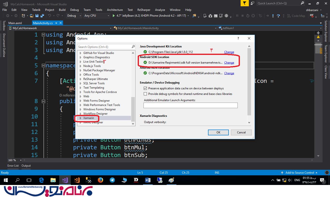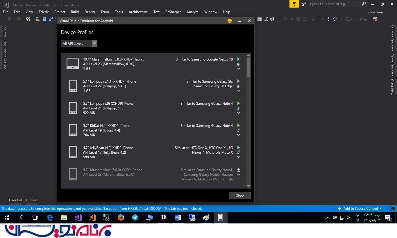 عدم نمایش کد برنامه Xamarin در Emulator Visual Studio2017 و روش اصلاح آن