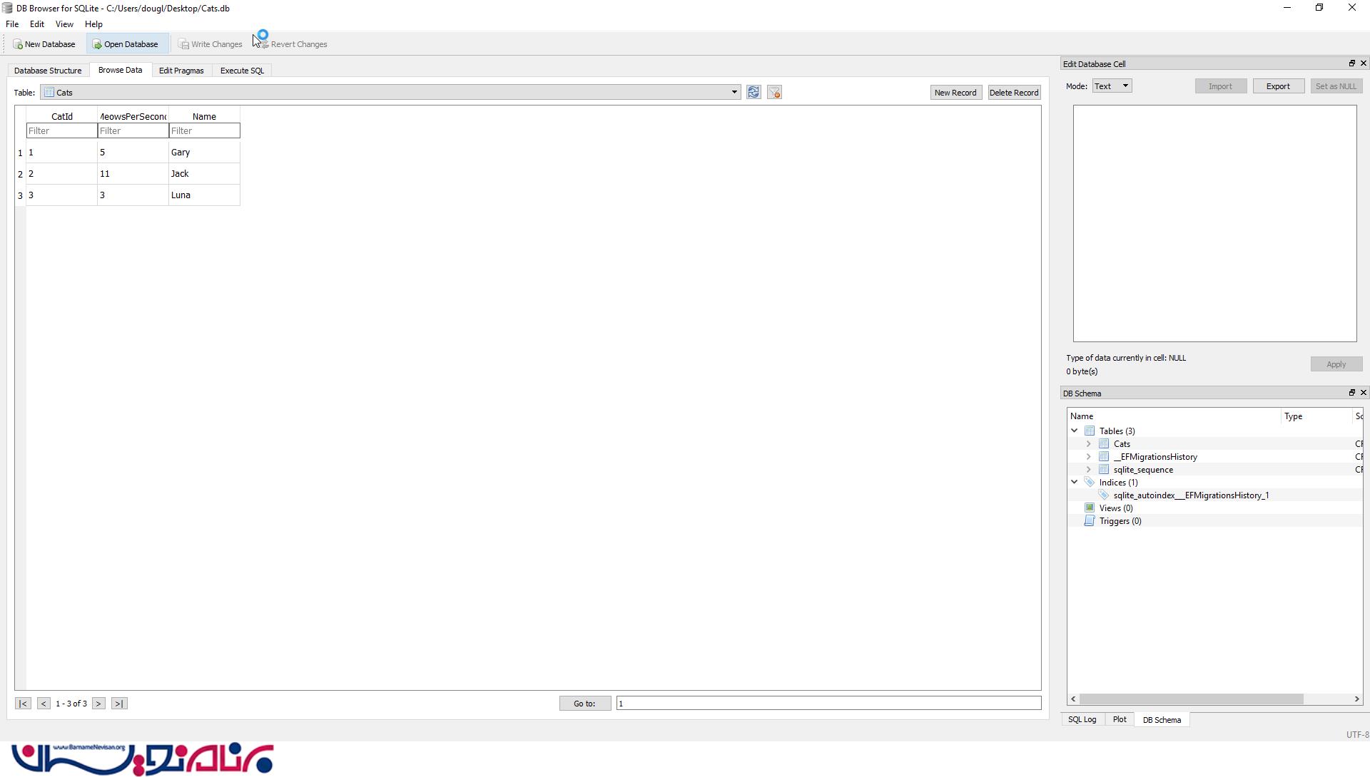 شما می توانید پنجره sqlite را باز کنید