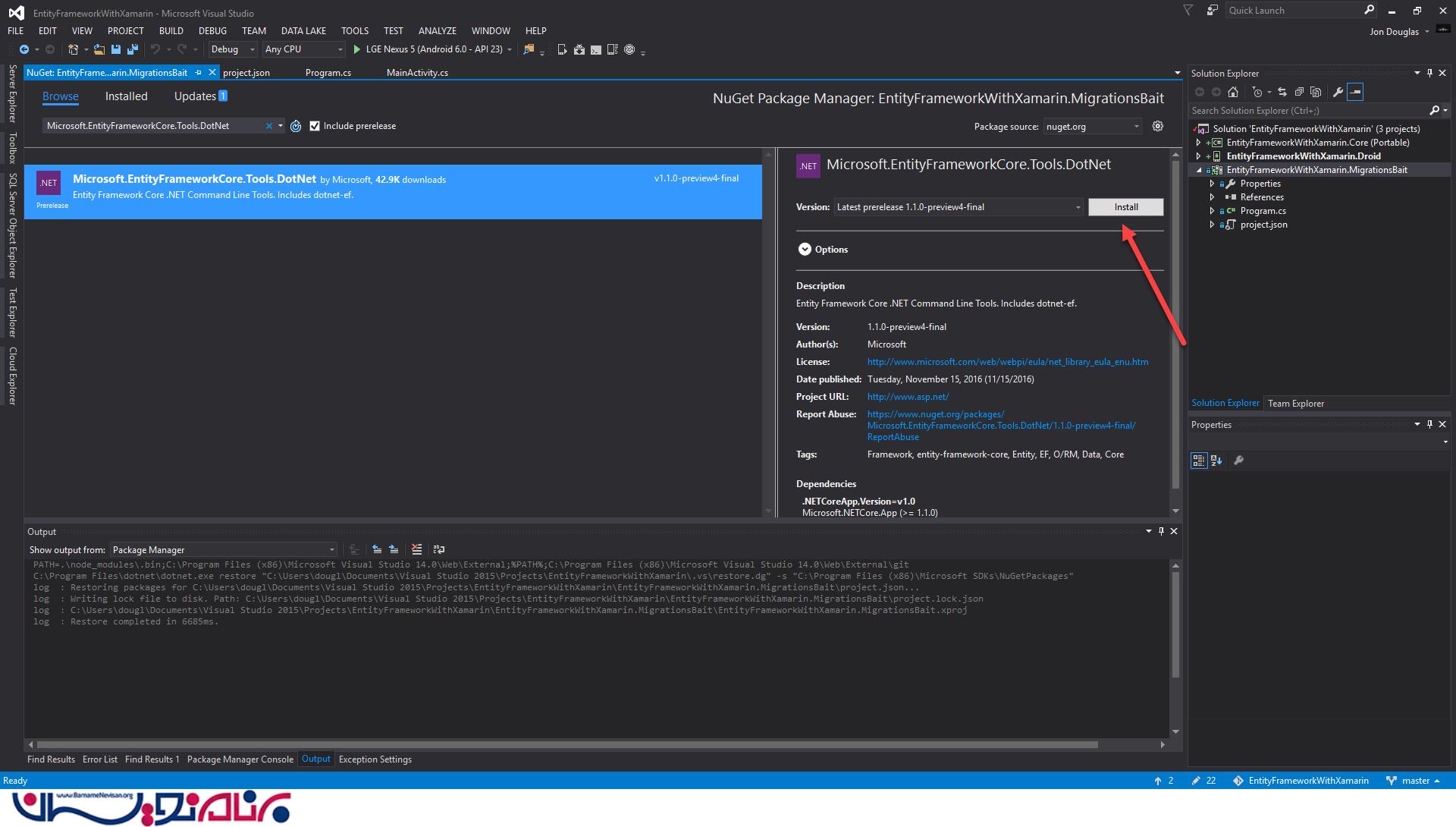 اضافه کردن بسته NuGet به پروژه Xamarin.Android
