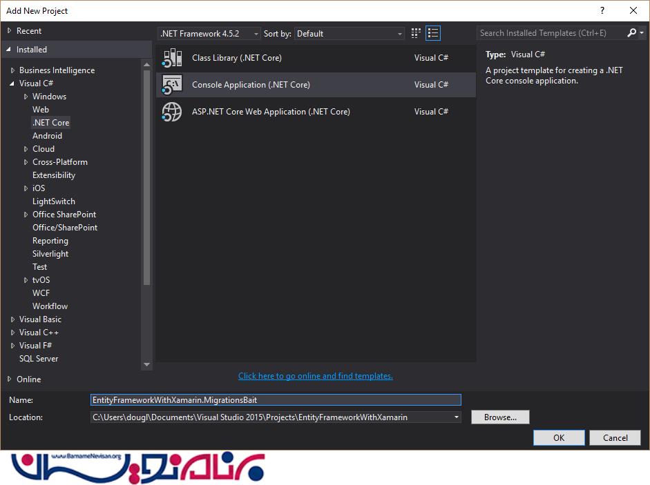 حال باید یک Contex ایجاد کنیم با استفاده از ابزارهای دات نت شما یک کنسول جدید ایجاد نمایید