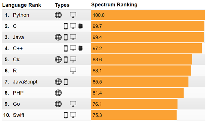 زبان برنامه نویسی هم دنیای جذابی دارد و هم باعث میشود که شما هیچوقت بیکار نباشید، اگر دنبال یادگیری زبان برنامه نویسی هستید باید در این زمینه پشتکار فراوانی داشته باشید، با توجه به علاقه و استفاده خود میتوانید یک زبان برنامه نویسی یا انواع زبان برنامه نویسی را یاد بگیرد، اینها همه بستگی به این دارد که شما از یادگیری زبان برنامه نویسی چه هدفی را دنبال میکنید، هر یک از زبانهای برنامه نویسی مزیتهای خود را دارند ما در این نوشته به معرفی 5 زبان برنامه نویسی که کاربرد بیشتری دارند، خواهیم پرداخت البته به غیر از این پنج تا زبانهای برنامه نویسی دیگری هم وجود دارند، بر اساس رنکینک سال 2017 زبانهای برنامه نویسی، میتوانیم محبوبترین آنها را به ترتیب اعلام کنیم: زبان برنامه نویسی Python، زبان برنامه نویسی c، زبان برنامه نویسی Java، زبان برنامه نویسی ++C و #C