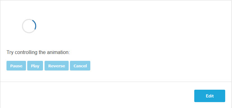 <div id="spinner"></div> <p>Try controlling the animation:</p> <button id="pause">Pause</button> <button id="play">Play</button> <button id="reverse">Reverse</button> <button id="cancel">Cancel</button>