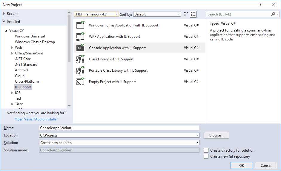 پس از نصب افزونه، قالبهای جدید برنامه برایمان ایجاد میشود و میتوانیم فایلهای IL را به سولوشن موجود اضافه کنیم.