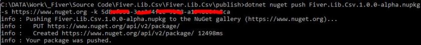 dotnet nuget push Fiver.Lib.Csv.1.0.0-alpha.nupkg -s https://www.nuget.org -k <api-key>