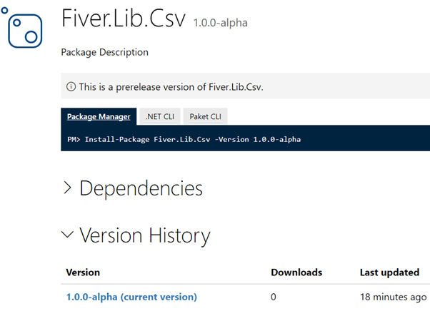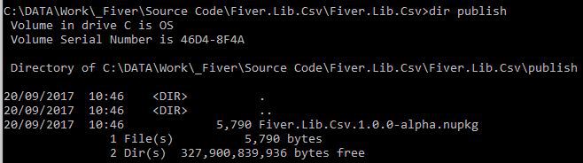 حال که شما یک registry و کلید برای آپلود پکیج خود دارید حال اجازه دهید که یک پکیج بسازیم و آن را منتشر کنیم در اینجا از یک class library ساده ی NET Core. که برای کار با فایل CSV نوشته ایم استفاده خواهیم کرد. source code را می توانید در GitHub پیدا کنید. البته می توانید از هرکدام از پروژه های خود نیز استفاده کنید.