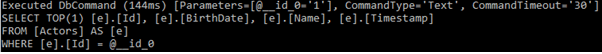 از متد EnableSensitiveDataLogging() در DbContextOptionsBuilder برای فعال سازی logging برای پارامترها ،که به صورت پیش فرض نمایش داده نمی شود، استفاده کنید.