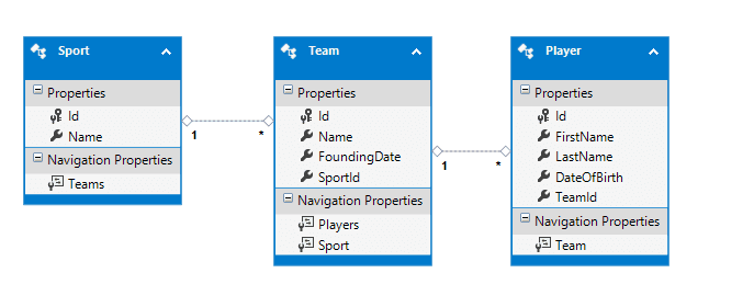 به عبارت دیگر، ورزش (Sport) تعدادی تیم (Team) دارد و یک تیم تعدادی بازیکن (Player) دارد.